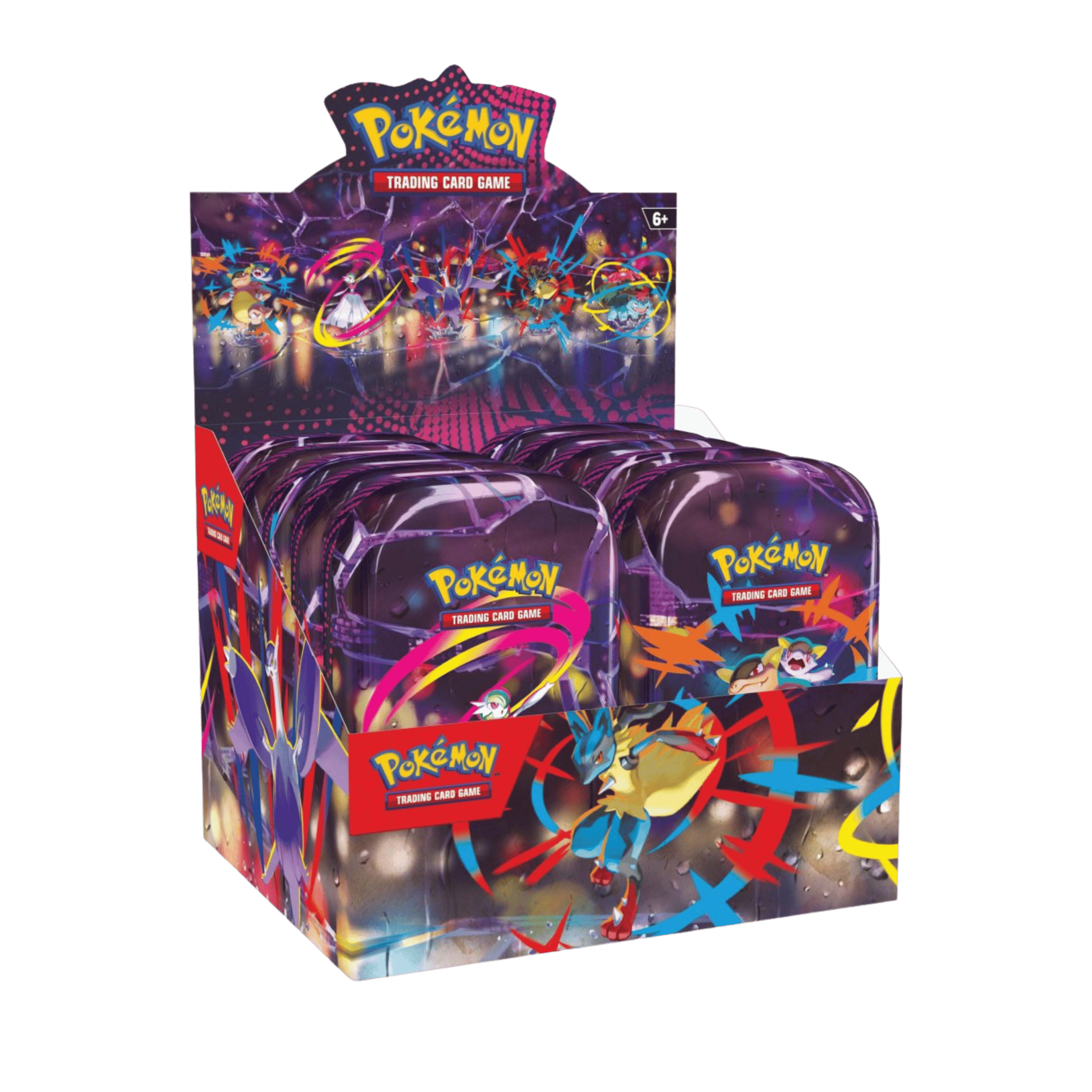 Pokémon Favorites in the Palm of Your Hand! In this Pokémon TCG: Mega Heroes Mini Tin, you’ll find: • 2 Pokémon TCG booster packs • 1 sticker sheet • A Pokémon art card showing the art from this Mini Tin—you can collect and combine all 5!