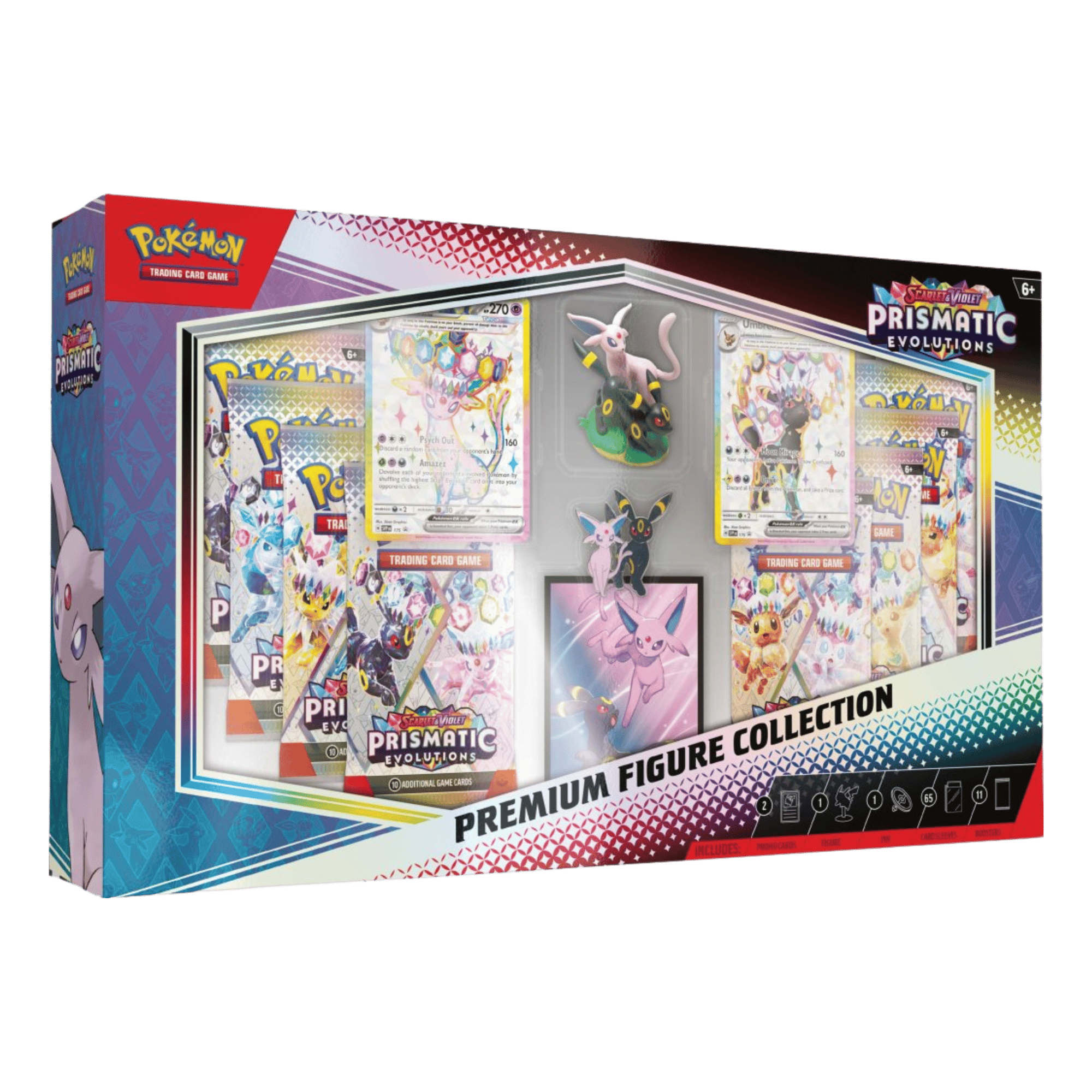 The Pokémon TCG: Scarlet & Violet—Prismatic Evolutions Premium Figure Collection includes: